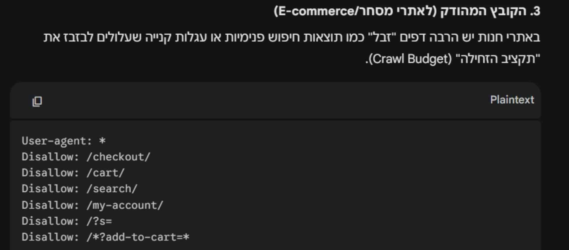 אמור להיפתח לכם משהו כזה [https://tzd-seo.org.il/robots.txt](https://tzd-seo.org.il/robots.txt), שנראה ככה: